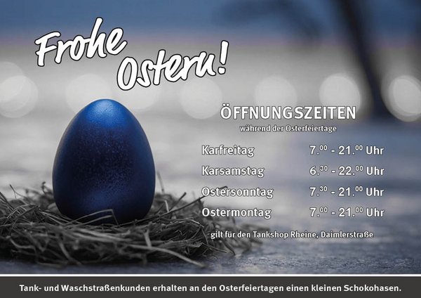 Bitte beachte unsere geänderten Öffnungszeiten während der Osterfeiertage!