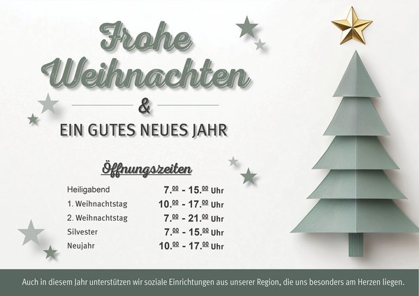 Bitte beachte unsere geänderten Öffnungszeiten während der Feiertage!